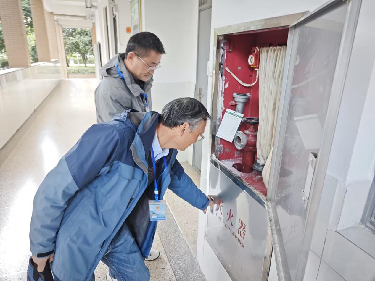 在 “校园安全情况” 专项督查中,督学们严格对照苏州市吴江区校园安全生产议事协调小组《全区教育系统安全隐患排查整治百日攻坚专项行动明查暗访实施方案》自查表,逐项核查治安防范、消防安全管理、食堂食品安全、校舍及设施设备维护、危化品存储使用、安全隐患与矛盾纠纷排查、护校值班、安全教育、校车管理(如有)、校园安全 “六化” 建设等 11 项内容,现场查看消防通道畅通情况、安防设施运行状态,翻阅食堂食品留样记录与安全培训台账,对学校安全管理的细致度与规范性给予肯定。